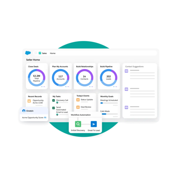 Grâce à l’intégration de l’intelligence artificielle et de l’automatisation, Sales Cloud permet aux équipes de vendre plus intelligemment, de collaborer en temps réel et de piloter leur performance grâce à des indicateurs précis, quel que soit l’endroit où elles se trouvent.